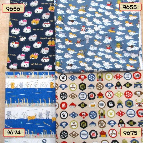 UGLY BUT CUTE ねこ 綿麻キャンパス ネイビー色 (9656 猫)