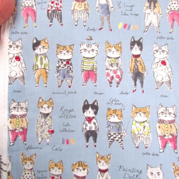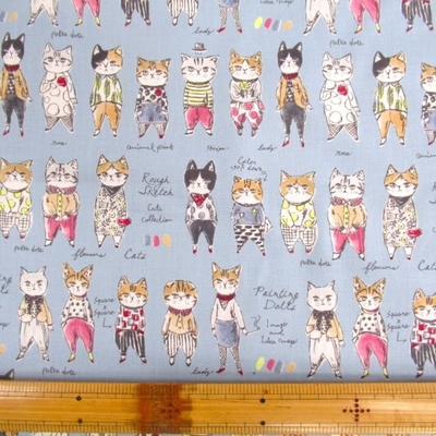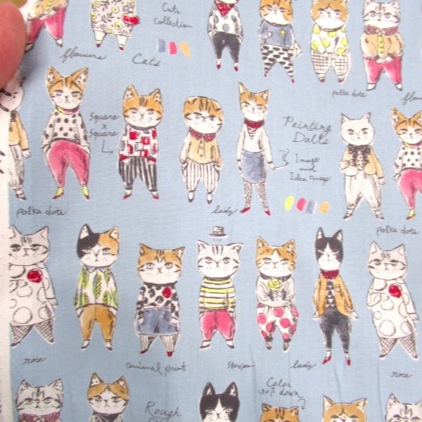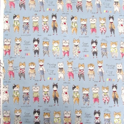 UGLY BUT CUTE ねこ 綿麻キャンパス ネイビー色 (9656 猫)