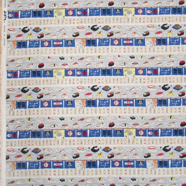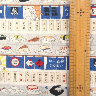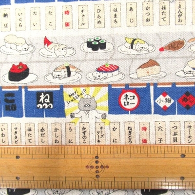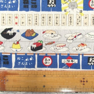 回転寿司猫 綿麻キャンパス ブルー系色 (9725 猫)