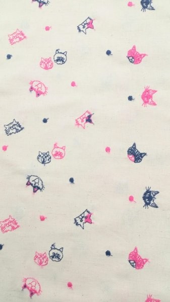 ねこ玉 綿・麻刺繍 (キナリ色)