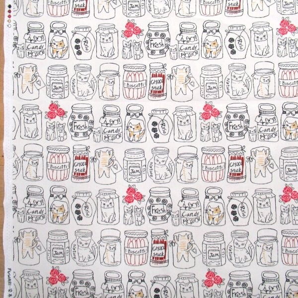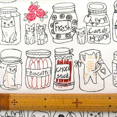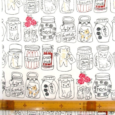 瓶猫 アイボリー色 オックス生地 (9750-1)