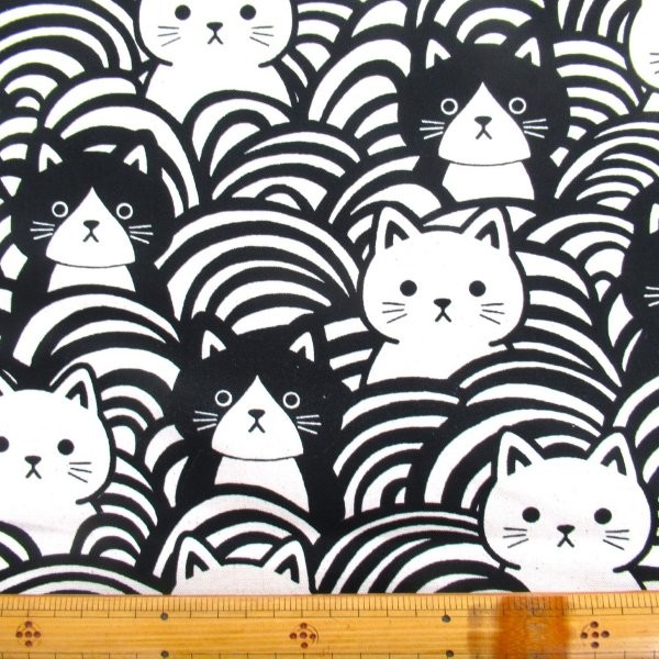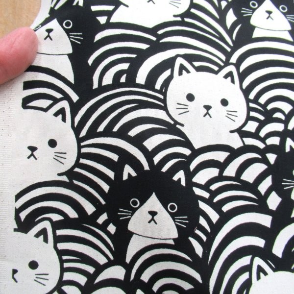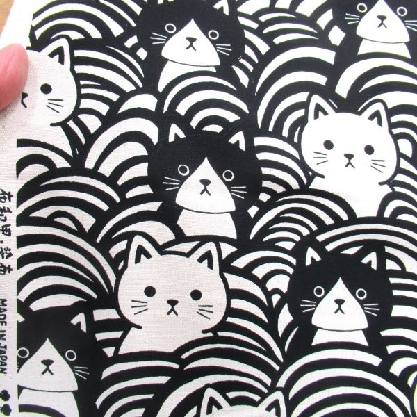 青海波猫 ブラック色 オックス生地 (9753-2)