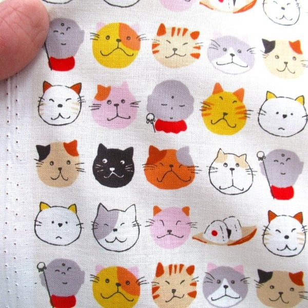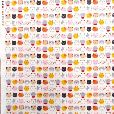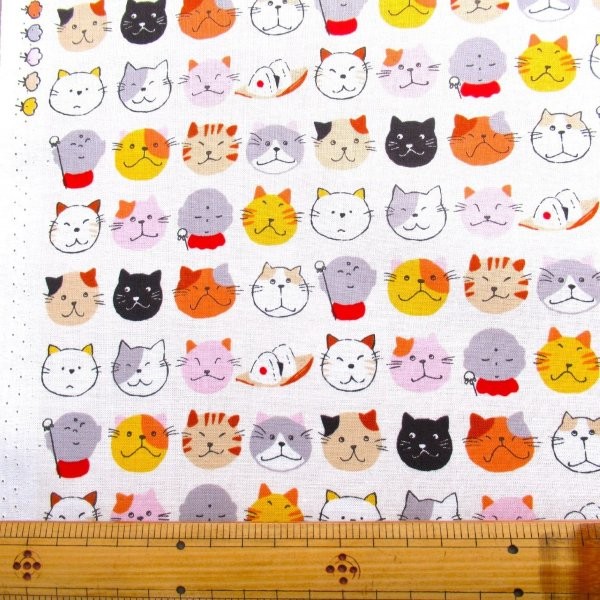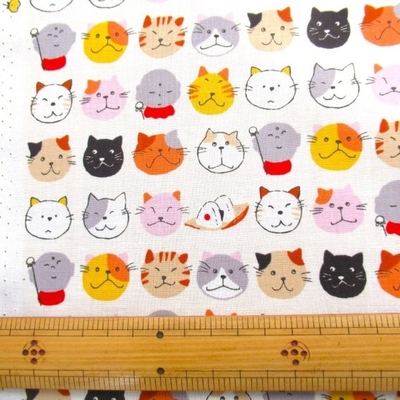 お地蔵さんと猫 アイボリー系色 スケアー生地 (9752)