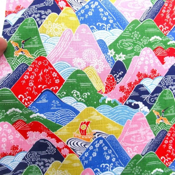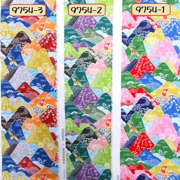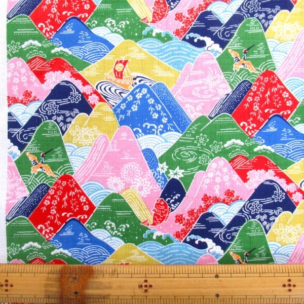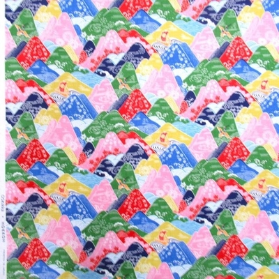 山と波 ドビー生地 ピンク×グリーン ( 9754-1 )
