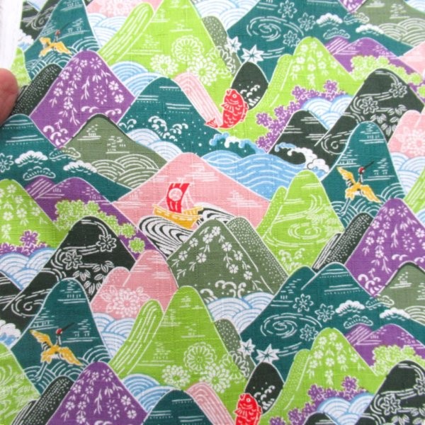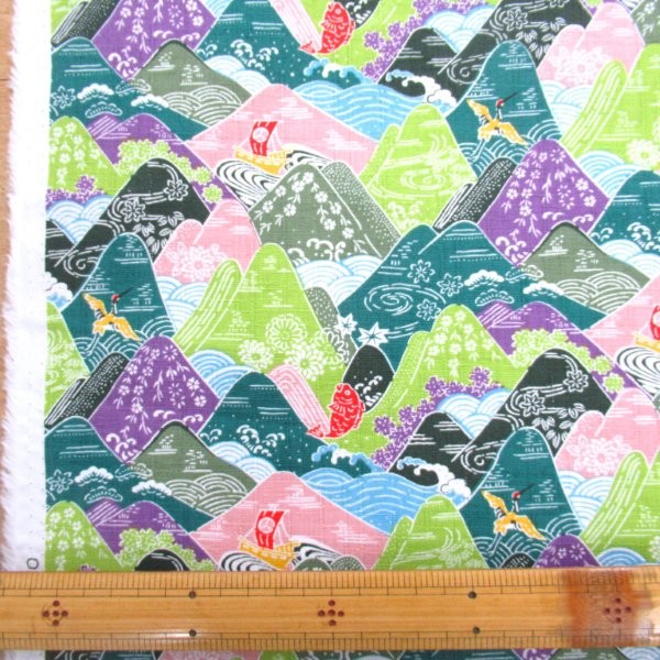 山と波 ドビー生地 グリーン×パープル ( 9754-2)