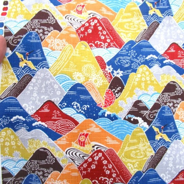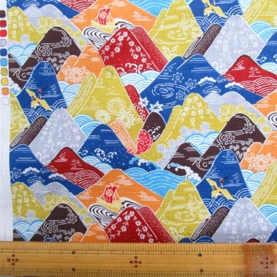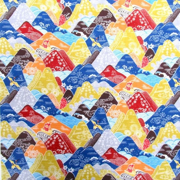 山と波 ドビー生地 イエロー×ブルー ( 9754-3)