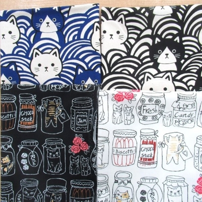 猫柄オックス生地 4枚セット (50cm×50cm×4枚)